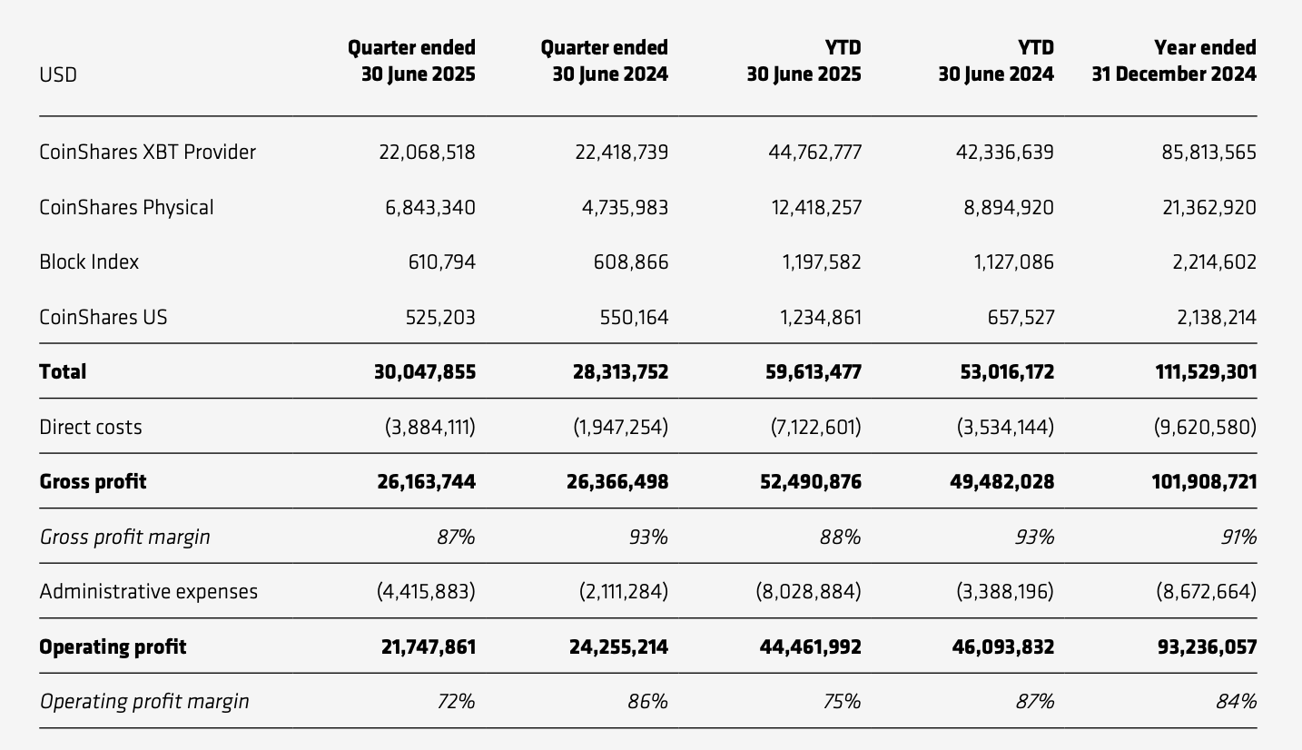 说完了 CoinShares 的发展历程,再来说说它的财务状况。